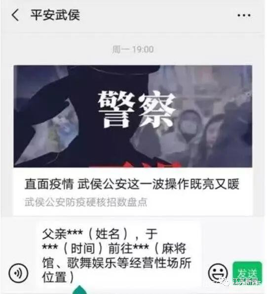 今天,“平安武侯”微信發文通知:如果發現爸媽出門,前往位於武侯區的營業性麻將場所娛樂,請將具體位置或座標後台私信我們!