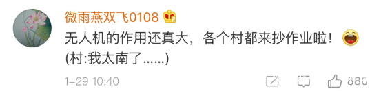 也有網友把關注的焦點放在了無人機身上,點贊之餘直呼“各個村都來抄作業啦!”↓
