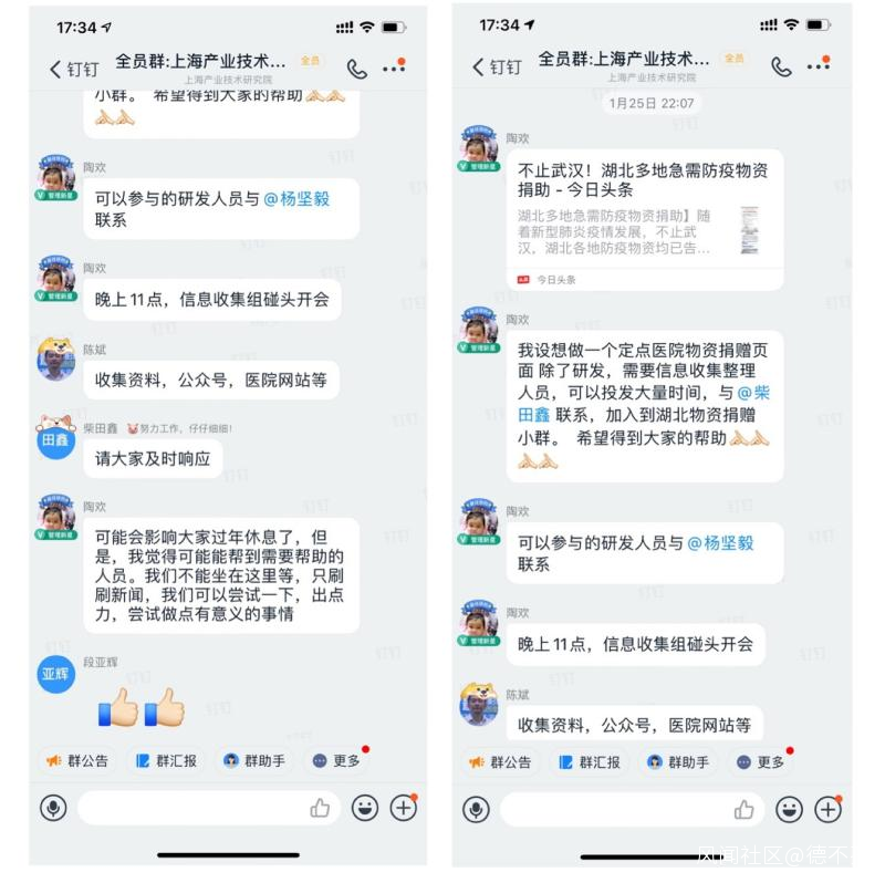 數據組組長柴田鑫遠在內蒙古大草原,他放棄了眼前的美景,每天從早7點工作到凌晨2點,只為確保發佈的每一條需求信息都真實、及時、可靠;外聯組組長段亞輝,手機保持24小時開機,數十個微信羣消息不停閃爍,電話、會議不間斷,只為號召更多的志願者參與公益平台建設;研發組成員王曉灑,人在河南、還生着病,仍二話不説地投身於平台前端開發。承擔信息收集工作的陳明明,是一名響應號召而來的熱心志願者,他日以繼夜盯着工作羣,每時每刻響應需求。