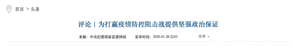 在1月28日,中共中央印發《關於加強黨的領導、為打贏疫情防控阻擊戰提供堅強政治保證的通知》,其中提出:各級黨委(黨組)要激勵引導廣大黨員、幹部特別是領導幹部在疫情防控鬥爭中挺身而出、英勇奮鬥、紮實工作,經受住考驗,切實做到守土有責、守土擔責、守土盡責。要在疫情防控第一線考察、識別、評價、使用幹部,把領導班子和領導幹部在疫情防控鬥爭中的實際表現作為考察其政治素質、宗旨意識、全局觀念、駕馭能力、擔當精神的重要內容。對錶現突出的,要表揚表彰、大膽使用;對不敢擔當、作風飄浮、落實不力的,甚至弄虛作假、失職瀆職的,要嚴肅問責。各級組織部門、紀檢監察部門要在各級黨委領導下,積極主動履職,有效發揮作用。