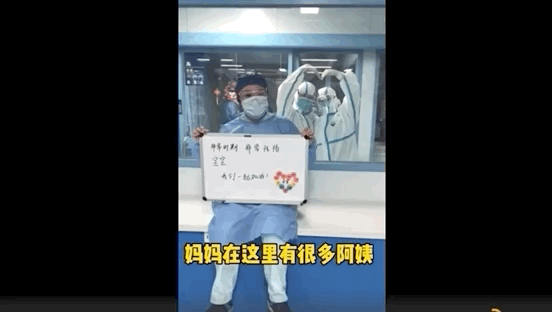 一位奮戰在一線,過年無法回家的醫生,給女兒錄了段視頻,讓她在家安心過年,後面的同事還在幫忙比劃着“愛心”。