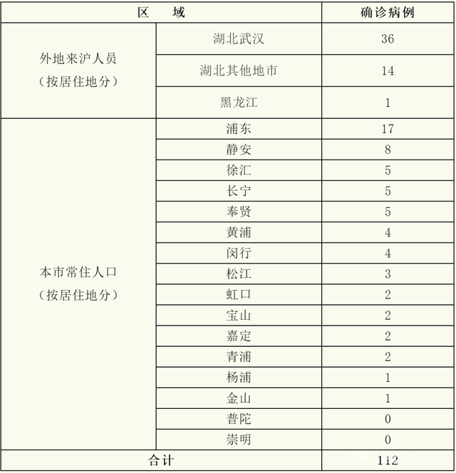 截至1月30日12時,上海市累計發現確診病例112例,其中,男性60例,女性52例;年齡最大88歲,最小7歲;78例有湖北居住或旅行史,1例有廣東旅行史並曾食用野生動物,31例有相關確診病例接觸史,2例無湖北接觸史;外地來滬人員51例,本市常住人員61例。具體情況如下: