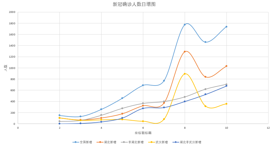 從圖中我們能看出武漢二十九日新增的感染人數基本與前一日持平,這大概可以説明在疫情的最嚴重區域完成了對疫情傳播勢頭的削弱。