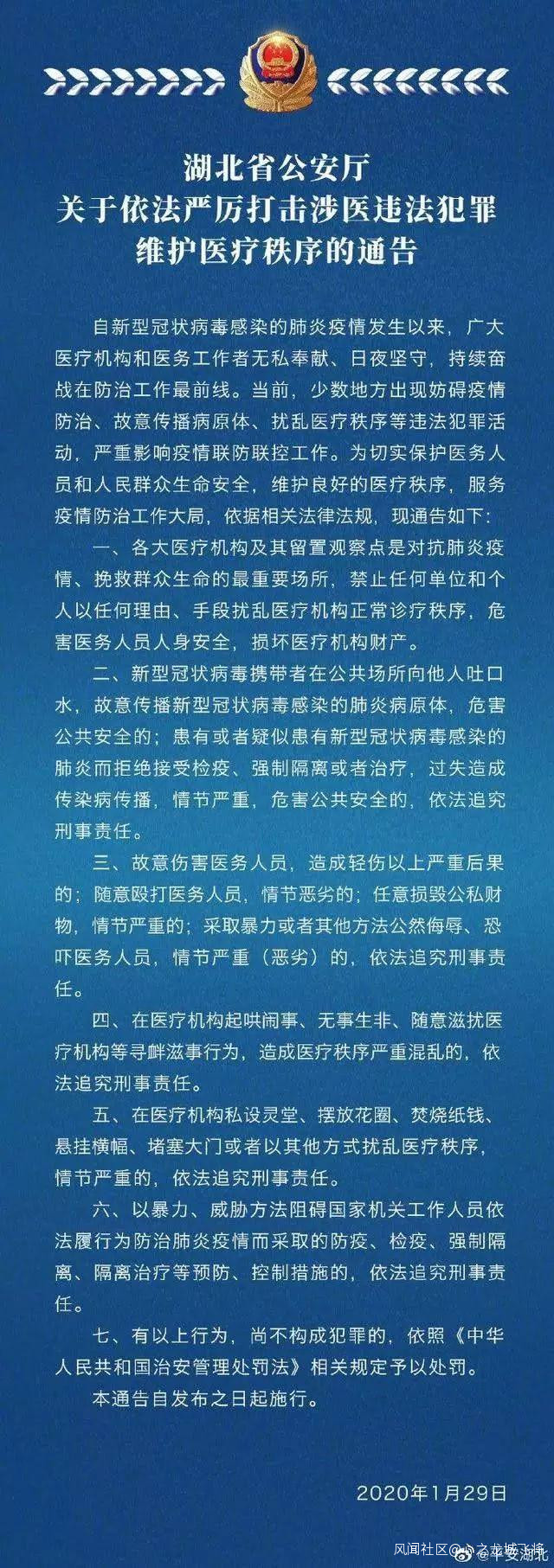 特殊時期,湖北公安宣佈嚴厲打擊以下涉醫違法犯罪行為_風聞
