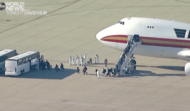 原本這架包機目的地是加利福尼亞州安大略國際機場,但在週二美國官方宣佈計劃突然改變,目的地臨時改成距離洛杉磯25英里外的空軍基地。