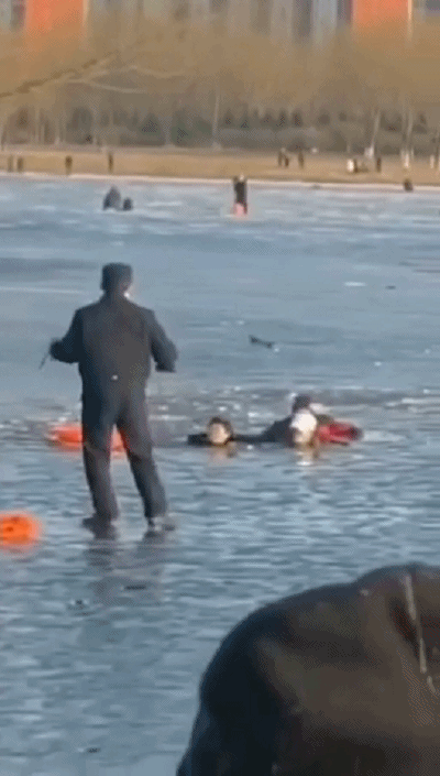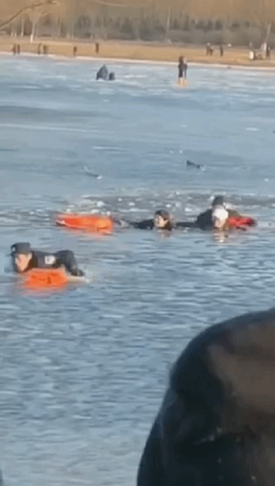 你實在待不住你在公園裏遛彎也行,別跑冰面上去瞎蹦躂行不行?有點起碼的常識行不行?