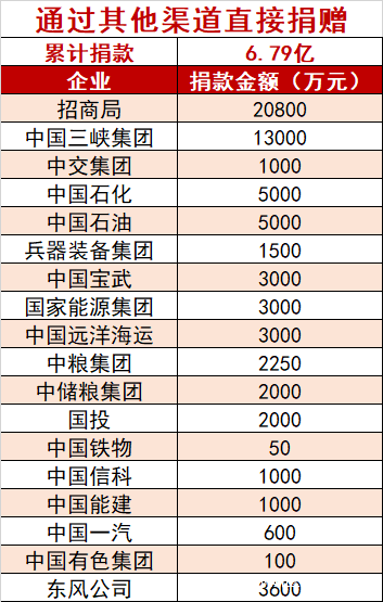 據初步統計,截至1月30日15時,目前共有41家中央企業通過國務院國資委專用賬户向湖北疫情防控一線捐款10.78億元。在國家電網、航天科技(11.770, 0.02, 0.17%)、中國航發、中國誠通、鞍鋼集團、中國移動、中國大唐等7家央企前期通過國務院國資委專用賬户向湖北疫情防控一線首批捐款1.95億元的基礎上,這兩天陸續又有中核集團、航空工業、中國電信、中國聯通(5.650, -0.23, -3.91%)、國家電投、國機集團、中國建材、中國鐵塔、中鋁集團、中國通用技術集團、中化集團、兵器裝備集團、兵器工業集團、中國電子科技集團、中國汽車技術研究中心、中國交建(8.400, -0.28,-3.23%)、中國西電(3.520, -0.12, -3.30%)等央企通過國務院國資委專用賬户捐款8.83億元。