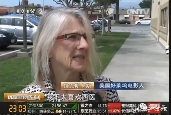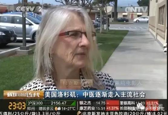 美國好萊塢著名影視製作人接受中醫針灸治療後,從此喜歡上了中醫,接受記者採訪時説她不太喜歡西醫,西醫十幾年沒有治好她的病,只是不停的給她藥。中醫針灸讓她恢復了健康。