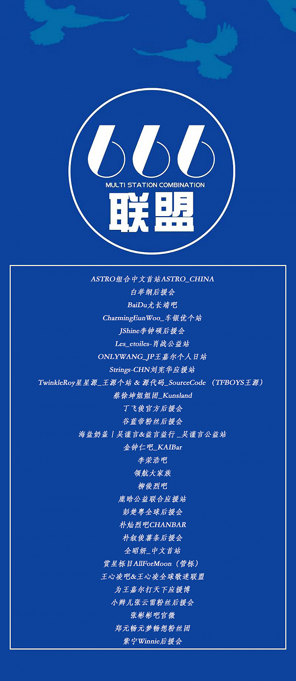 和之前的公益行動相比,這次支援武漢最大的不同就是我們這個聯盟來自不同的飯圈。疫情出現後,我們臨時集結了666聯盟,由來自內地、港台以及海外的共計27家粉絲團體組成,羣成員大部分都是各站子的皮下。