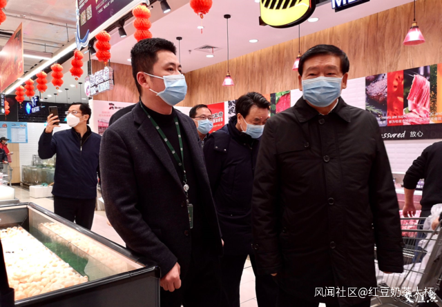 隨後,婁勤儉隨顧客一道,依次接受體温檢測後進入超市。看到貨架上各種蔬菜、肉製品、水產品、菌菇類等食品供應充足,價格保持平穩,顧客們都自覺佩戴口罩,賣場內井然有序。婁勤儉對店長説,當前疫情防控形勢嚴峻,一方面要嚴格落實各項防控舉措,認真做好消毒消殺等工作,另一方面要精心組織好貨源,保證老百姓的正常生活,履行好企業的社會責任。