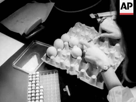 為了研製感冒疫苗,研究人員還在雞蛋裏注射病毒。這個方法和現在的流感疫苗的製造方法是一致的。但是,因為造成普通感冒的病毒並不能感染除人類以及近親以外的其他動物細胞,這種嘗試最終失敗了。