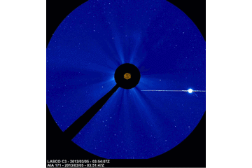 1998年,美國宇航局SOHO探測器日冕儀下拍攝的太陽日冕物質拋射,它還湊巧捕捉到一顆彗星。