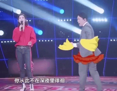 於是,他就用肢體動作,“演”完了一首《愛如潮水》。