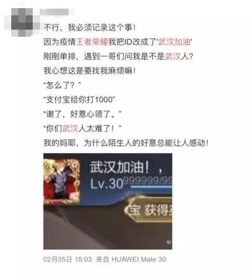 除去《劍網3》的捐款活動,我還看見了許多玩家和遊戲在這次疫情中的暖心舉動。《我的世界》玩家在遊戲中搭建火神山與雷神山醫院為武漢加油;《王者榮耀》、《陰陽師》等遊戲玩家將ID改為“武漢加油湖北加油”;《魔獸世界》公會玩家自發組織物資捐贈送往武漢前線;《逆水寒》發放“武漢加油!中國加油!”永久稱號。每個遊戲的玩家與公司都在用自己的方式為抗擊疫情盡一份綿薄之力。