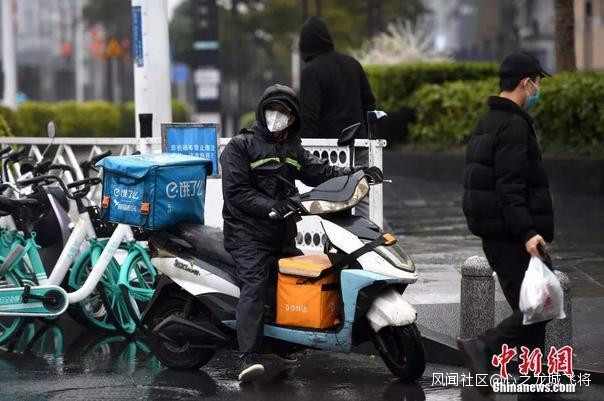 2月6日,一名外賣騎手正在送餐。中新社記者 俞靖 攝