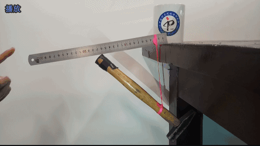 和這相關的內容還特別容易出現震驚體,比如**《震驚!一把尺子一個錘子就能挑戰基本物理定律!》**。但其實分析一下就能知道,整個系統右邊重得多,絕大部分質量都集中在錘頭,所以整個系統其實就是一個看起來有點複雜的鈎子,自然可以穩定地勾在桌沿。