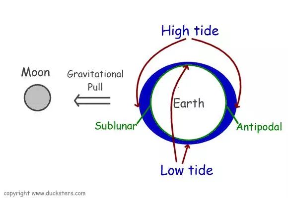 月亮引起的潮汐示意圖