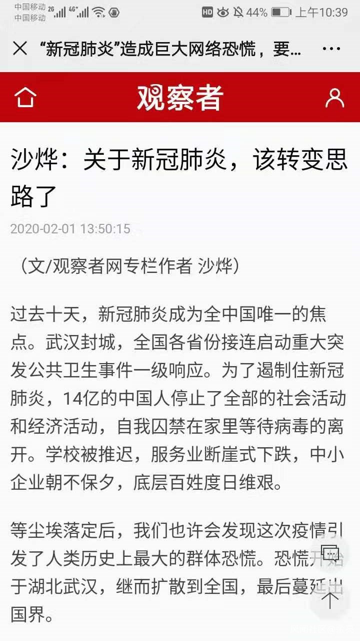 一些媒體、自媒體熱衷於監督也沒錯,但是也不能極端。放大恐慌情緒,多數企業長期不開工的話,沒有收入,就算財大氣粗的媒體也會倒閉,那以後還怎麼繼續發揮輿論監督作用?病毒的烈度下降了一些,媒體的勁頭也要相應下降一點。