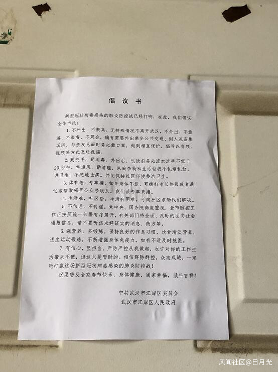 1月23日封城當天物業貼在門口的江岸區倡議書