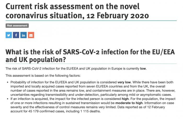 歐盟疾控中心在2月12日的新冠風險評估中,也運用了SARS-CoV-2這一説法。
