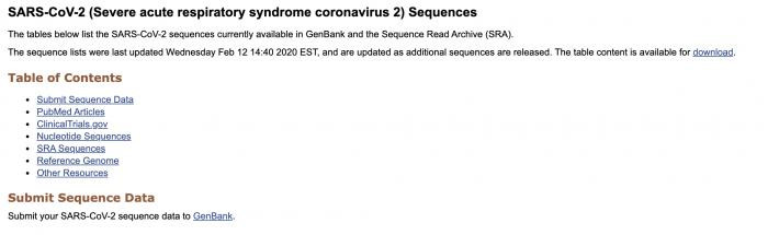 美國國立生物技術信息中心(National Center for Biotechnology Information ,NCBI)建立的DNA序列數據庫GenBank網頁上已經使用了SARS-CoV-2名稱。