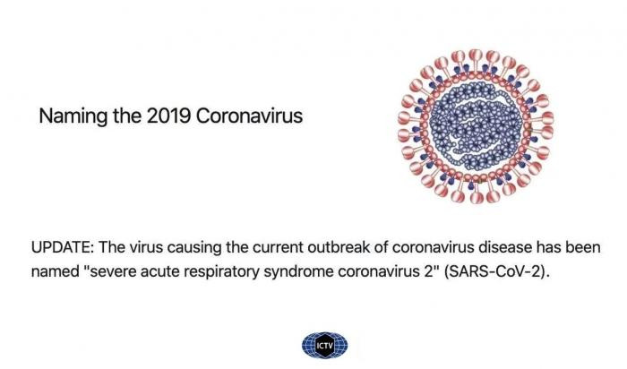 2月11日,國際病毒分類委員會(International Committee on Taxonomy of Viruses,ICTV)宣佈新型冠狀病毒的正式名稱:嚴重急性呼吸綜合徵冠狀病毒2 (severe acute respiratory syndrome coronavirus 2,SARS-CoV-2)。