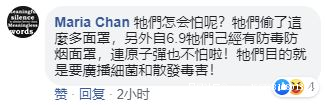 不過,亦有網友反諷道,“他們怎會怕?他們偷了這麼多面罩。另外,自6月9日起,他們已有防毒、防煙面罩,連原子彈也不怕啦!他們的目的就是要傳播細菌和散發毒害!”