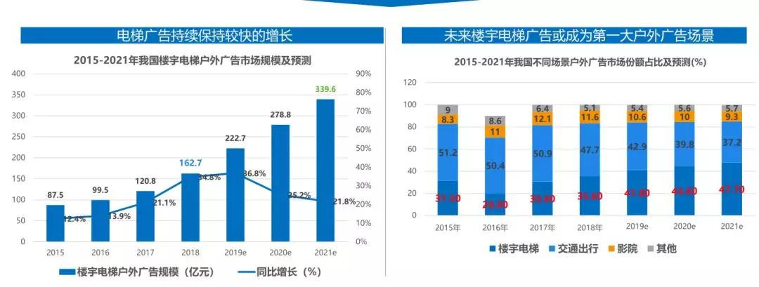 據數據顯示:自2016年起,電梯廣告佔線下廣告場景的比例逐年升高,預計將於2020年成為第一大線下廣告場景。