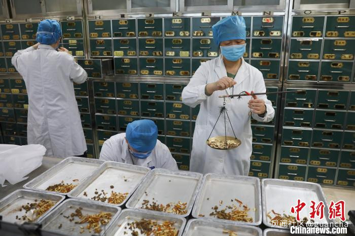 2月15日,北京地壇醫院中藥藥師按照藥方配置藥物。 中新社記者 盛佳鵬 攝 這是北京地壇醫院中西醫結合中心副主任江宇泳在15日接受記者採訪時透露。