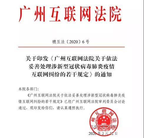 13日晚,廣州互聯網法院在官方微信公號發佈《關於依法妥善處理涉新型冠狀病毒肺炎疫情互聯網糾紛的若干規定》(以下簡稱《規定》),對與疫情或防疫工作有關的互聯網糾紛如何妥善處理作出明確指引。據悉,《規定》共計30條,自發布之日起施行,就疫情期間利用網絡侵犯消費者購買防疫物資、對患者進行侮辱誹謗、製造傳播謠言以及網絡服務侵權等行為作出相應規定。