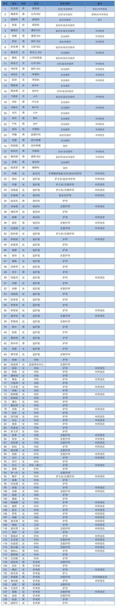 也許,下面這張“湘雅二醫院第三批援鄂醫療隊”名單的最後一欄能夠解釋他們中的很多人為什麼這樣做,也能解釋那些還沒有這個身份的人,受到了怎樣的感召。——當然,他們都是同樣優秀的。