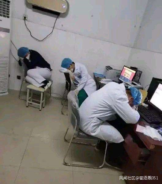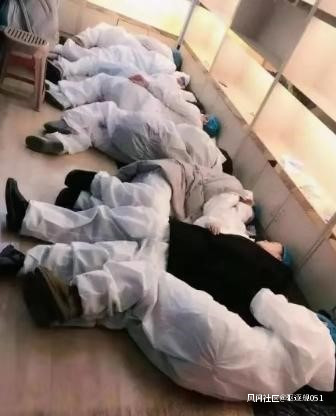 下面兩圖,是武漢一線的白衣戰士們休息的照片: