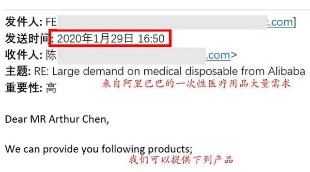 “我是阿里巴巴的採購經理。我們想購買大量的醫療用品,包括N95口罩、防護服、手術服、防護眼鏡等。我們已將需求在郵件中發送給您,期待您的回覆。”1月29日,格克尼茲收到了這封來自中國的電子郵件,裏面詳細記錄了每一項需求的具體要求。儘管郵件中並沒有列明採購目的,但格克尼茲還是敏鋭的意識到,這次採購非比尋常。