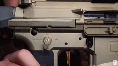 在細節上,“蜜獾”步槍也下足了功夫,比如為配合伸縮式槍托,在上機匣兩側設計了凹槽方便抽拉;彈匣裙口底緣向外擴展,可以使彈匣的抽插更為流暢;加大的扳機護環則方便寒冷地區戴手套操作等。