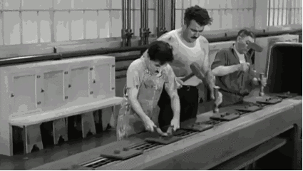 工業革命尤其流水線發明之後,工人也有了“辦工室”,每天準時到崗,集中上班,工人們同樣用空間換時間(效率)。