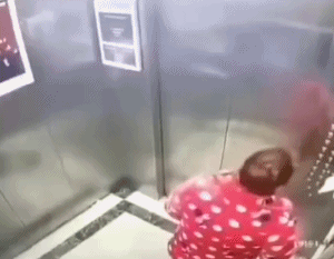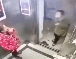 但可能確實又急着出門,女士還是硬着頭皮上了電梯。