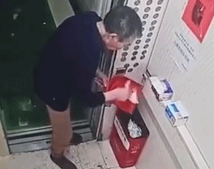 還有個老人放着自家的垃圾桶不用,去電梯裏的扔紙巾的垃圾桶裏倒起了垃圾。