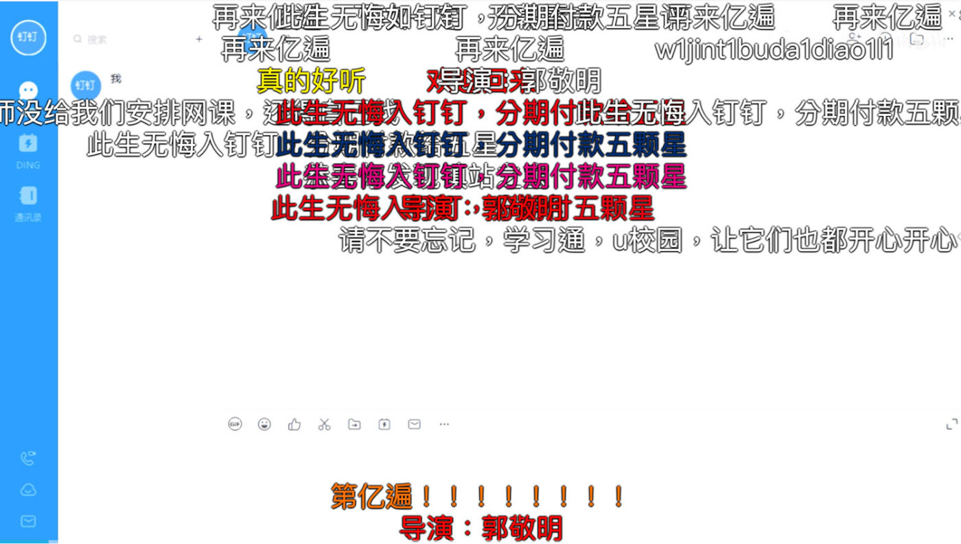 如果要問這場因為疫情而引發的鬼畜創作風潮,帶來了什麼意外影響的話,那麼阿里旗下的辦公類APP釘釘,恐怕就是最大的“受害者”了。雖然幾位知名鬼畜區UP主在並沒有號召大家去做與釘釘有關的視頻,但隨着許多地區的中小學校開始倡導網課學習,加之許多創作者都還是學生,所以許多學校用來上網課的APP釘釘,也莫名其妙地捲入了這場圍繞疫情而展開的鬼畜視頻創作浪潮中。