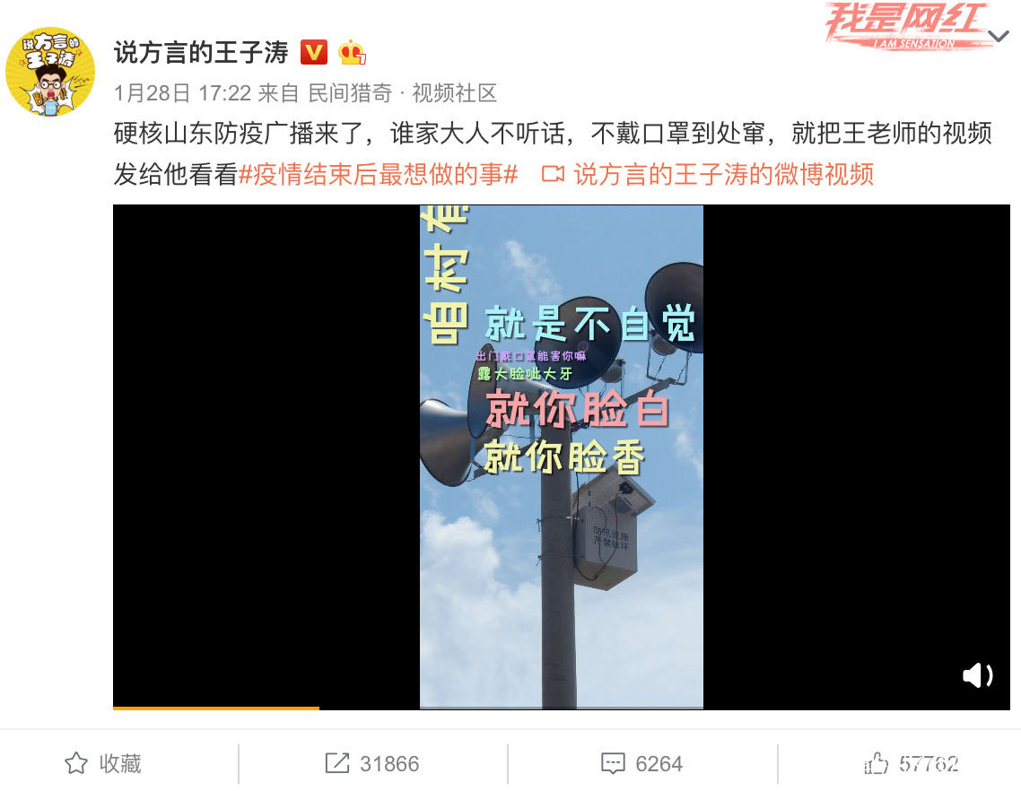 由於這場戰疫正值春節期間,為了最大限度保護民眾的健康安全,全國各地都掀起了一股非常本土化的預防新冠宣傳教育。除了充滿了民間智慧的標語以外,各村各小區的方言宣傳廣播也給廣大網友留下了深刻的印象,算是這場疫情裏為數不多的快樂源泉。