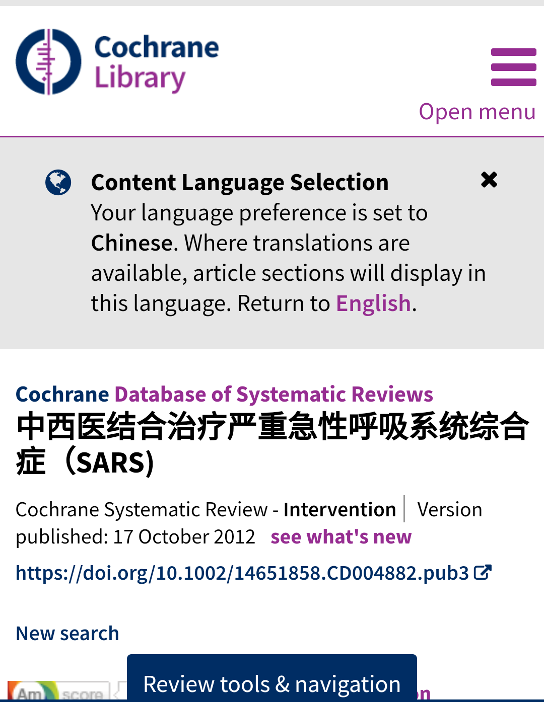 旨在評價中西醫結合與僅使用西藥治療SARS患者可能的有效性和安全性。