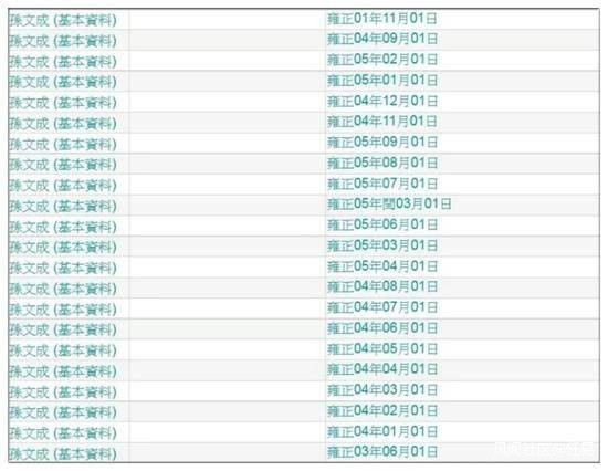 我們再看最後一條的時間,雍正05年9月1日。這是因為雍正五年,雍正以孫文成年老體弱為由撤掉了他的職務,算是得了個善終。