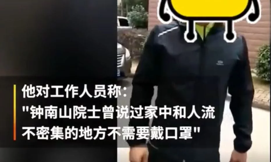 江西豐城,一名教師因為在空曠無人的小區跑步沒戴口罩,結果被強制隔離14天,還捱了單位處分。工作人員根本不聽他的辯解,儘管這“辯解理由”是鍾南山的權威説法——“在家中和人流不密集的地方不需要戴口罩”。