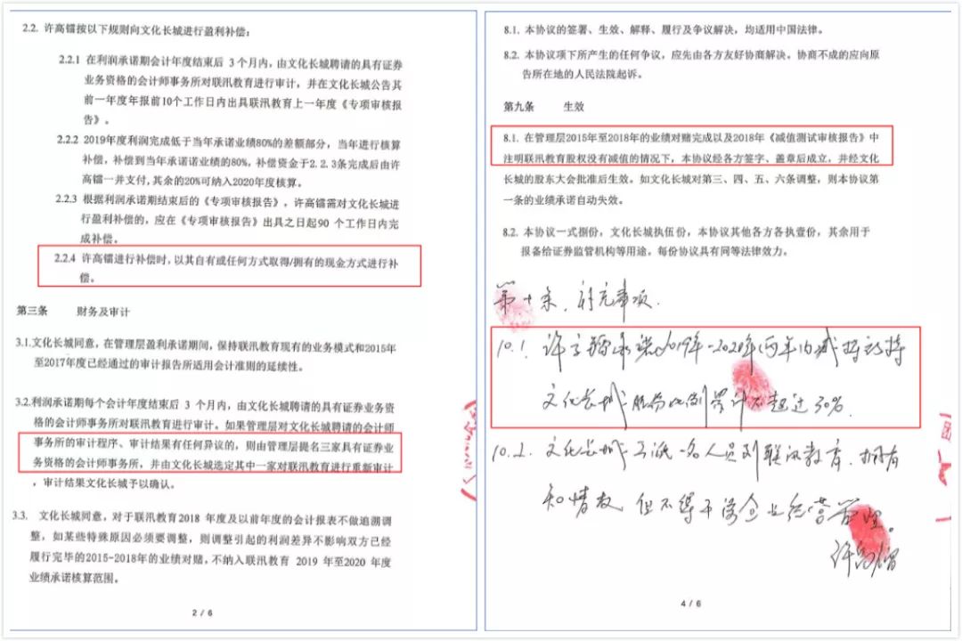 另外許高鐳披露,根據2016年簽署的《購買資產協議》顯示,文化長城委派或任命到聯汛教育的人員不得干涉聯汛教育的日常經營管理。
