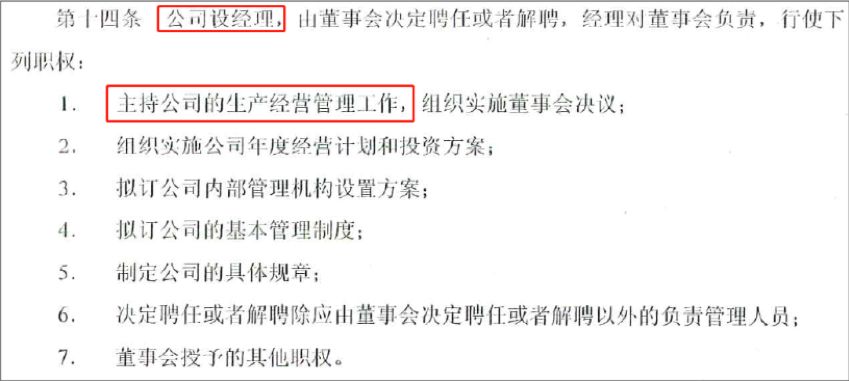 在《公司章程》中亦明確規定,公司的生產經營管理工作,由許高鐳所擔任的經理一職來主持。