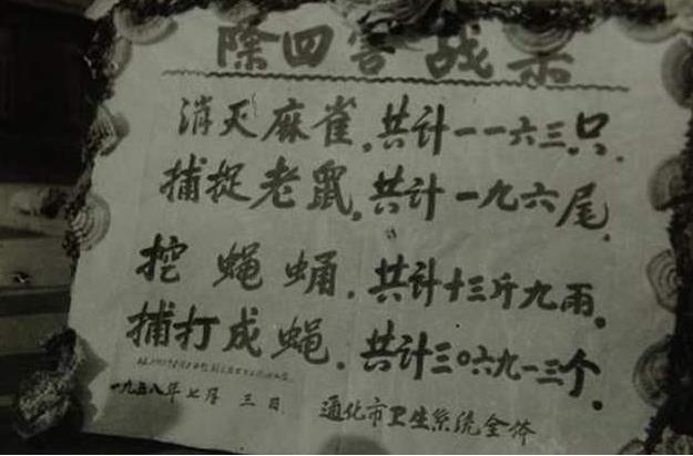 1958年4月19日至21日,北京集中圍剿麻雀,專門成立了首都突擊圍剿麻雀總指揮部,併發布了全面圍剿麻雀的戰鬥計劃。作戰方法包括施放毒餌、火槍伏擊、夜間掏堵等。(1958年4月16日《北京日報》1版,《全市圍殲麻雀大戰就要開始》)