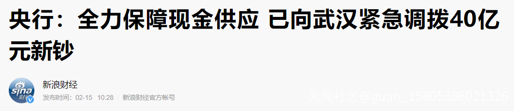 2月15日央視新聞報道,央行向武漢緊急調撥了40億元的新鈔。