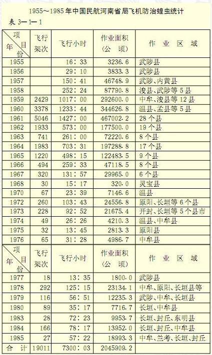 以蝗災最為嚴重的河南為例,1960年裝備運五飛機的民航河南省局專業飛行隊(現改組為南航河南南陽基地)成立後,蝗災得到了立竿見影的控制,在河南各地文獻中我們找出瞭如下記錄: