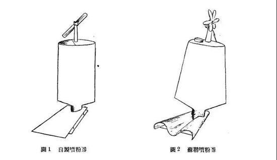 波-2飛機使用的兩種噴粉機,使用空氣推動螺旋槳攪拌噴口處的殺蟲劑。