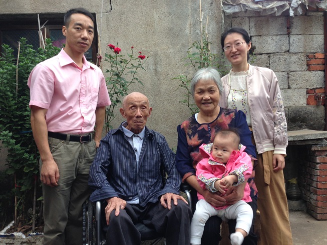 (二寶與爺爺,2017年10月4日攝於浙江金華石門農場老住宅區)