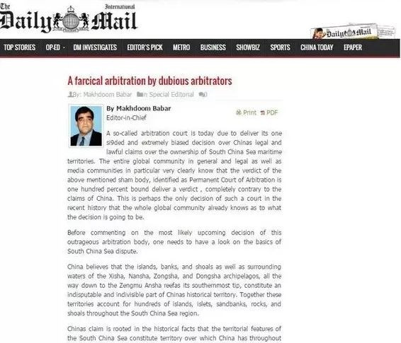 “南海仲裁是一場鬧劇。”
